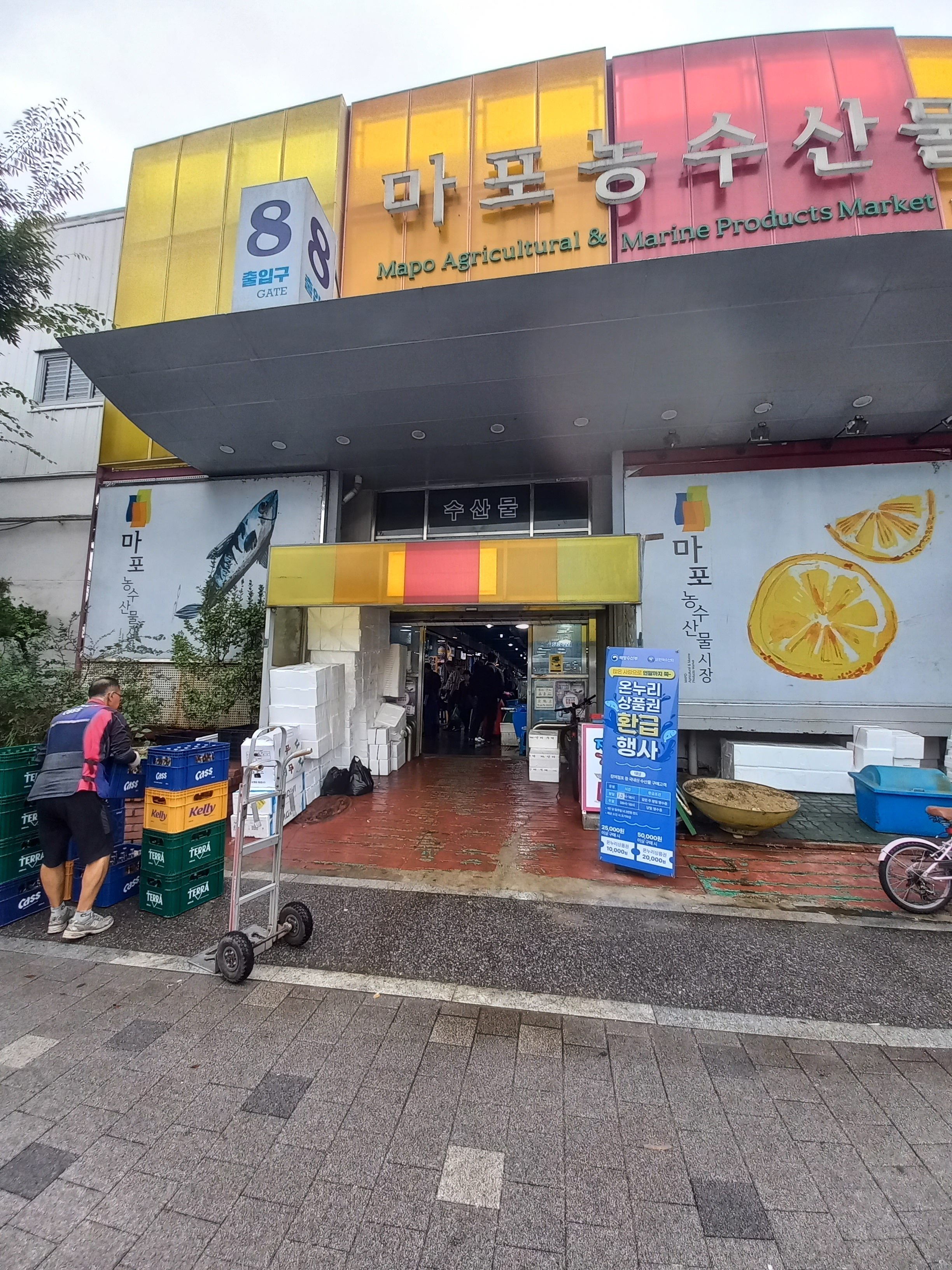 싱싱한 횟감과 해산물이 가득한 실내형 전통시장 마포농수산물시장이 있습니다.